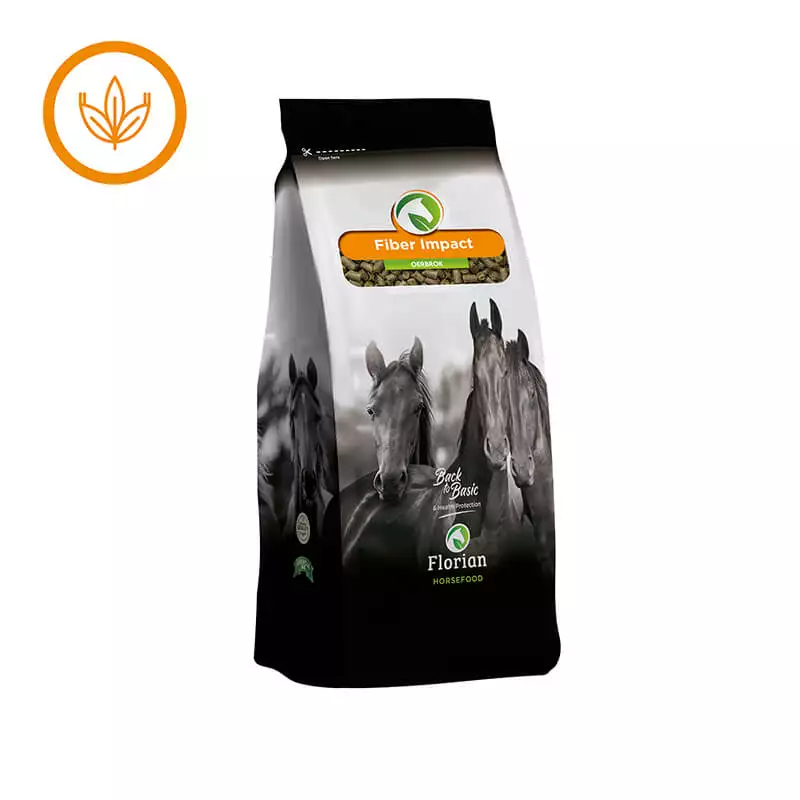 De Florian Fiber Impact is een vezelrijke oerbrok, vrij van soja, luzerne, melasse en granen, en biedt een gezonde balans tussen essentiële voedingsstoffen. Dankzij het hoge vezelgehalte en lage suiker- en zetmeelgehalte, ondersteunt het optimaal de spijsvertering en bevordert het de darmgezondheid. Boordevol hoogwaardige eiwitten, vitamines en mineralen zorgt deze voeding voor een uitgebalanceerde dagelijkse voeding voor je paard. Deze complete mix is samengesteld uit gedroogd timotheegras, grasmeel, esparcette en lijnzaad. Geschikt voor dagelijks gebruik, als snoepje/tussendoortje of als aanvulling na het werk, voor een gezonde en vitale levensstijl van je paard. Deze oerbrok bevat de benodigde vitamines en mineralen die een paard nodig heeft.